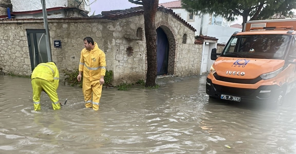 İhbarlar üzerine harekete geçen Çeşme Belediyesi ekipleri, su baskınlarının yaşandığı noktalarda vidanjör ve motopomplarla tahliye çalışması başlattı.