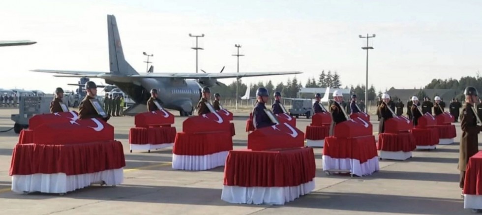 Gürcistan–Azerbaycan sınırında düşen askeri kargo uçağında şehit olan 20 askerin cenazeleri, dün akşam Tiflis’ten Ankara’ya getirildi. Ankara Adli Tıp Kurumu’ndaki otopsi işlemlerinin ardından şehitler için Kahramankazan’daki Mürted Hava Meydan Komutanlığı’nda tören düzenlendi. Törene, şehit aileleri ve yakınlarının yanı sıra TBMM Başkanı Numan Kurtulmuş, Milli Savunma Bakanı Yaşar Güler, Aile ve Sosyal Hizmetler Bakanı Mahinur Özdemir Göktaş, Genelkurmay Başkanı Orgeneral Selçuk Bayraktaroğlu ve Ankara Valisi Vasip Şahin katıldı. Şehitler için saygı duruşunda bulunuldu, öz geçmişleri okundu ve dua edildi. Şehit yakınları tabutlara sarılarak gözyaşı döktü.