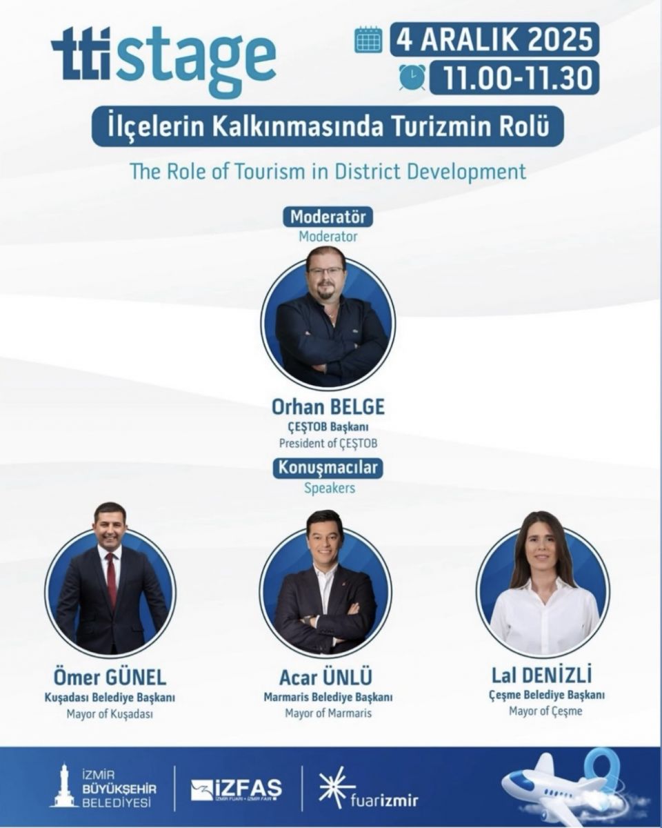 Her yıl dünyanın dört bir yanından turizm temsilcilerini İzmir’de buluşturan TTI İzmir, iletişim ve iş bağlantıları kurmada sektörün en etkili platformlarından biri olarak öne çıkıyor. Fuarda, turizmde yeni trendler, yatırım fırsatları, iş birlikleri ve sektörün geleceğine yönelik stratejiler masaya yatırılacak.