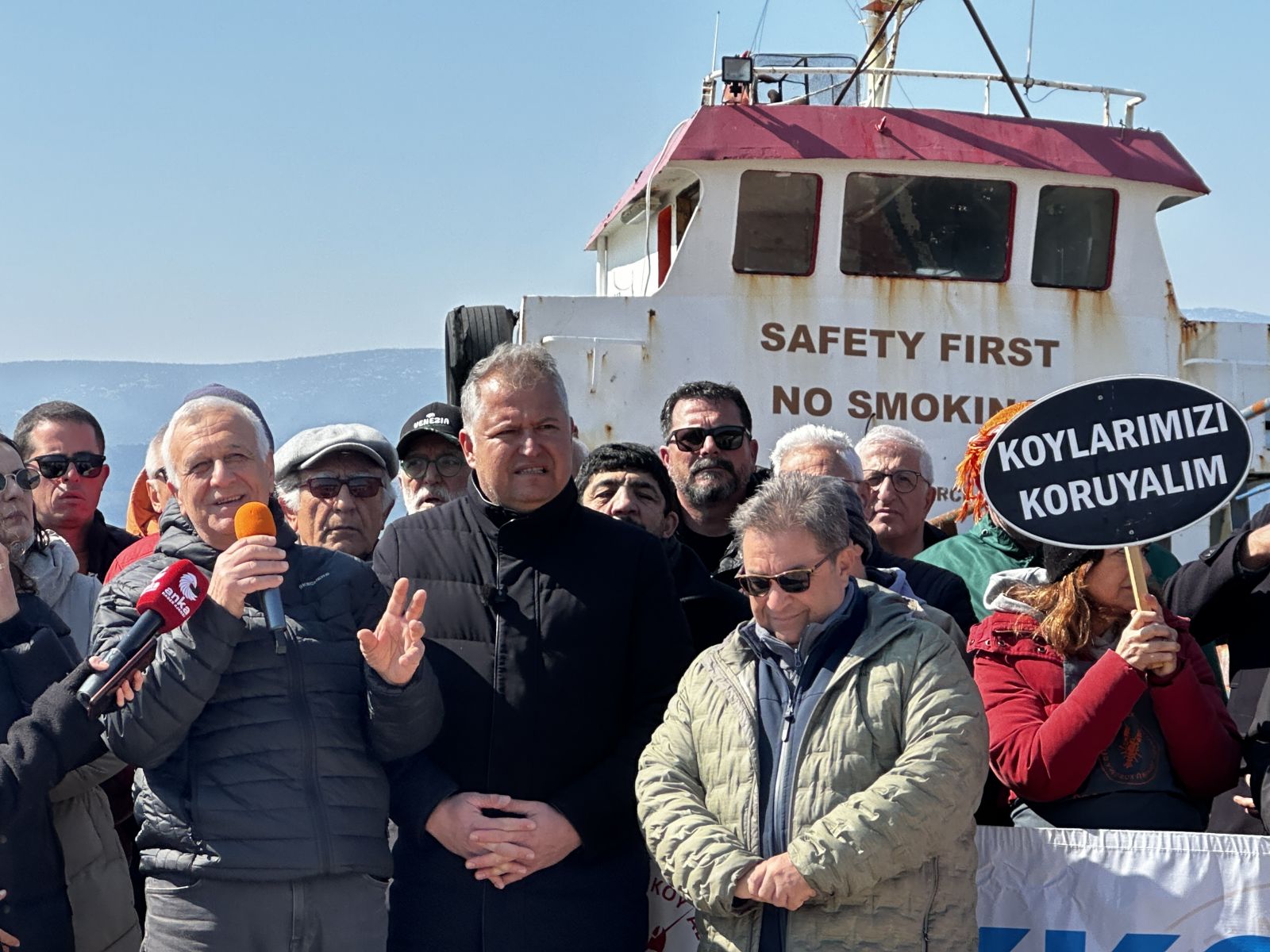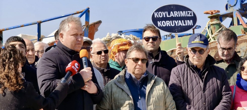 Eylemde konuşan Urla Belediye Başkanı Selçuk Balkan, gemiyle ilgili son gelişmeleri paylaştı.